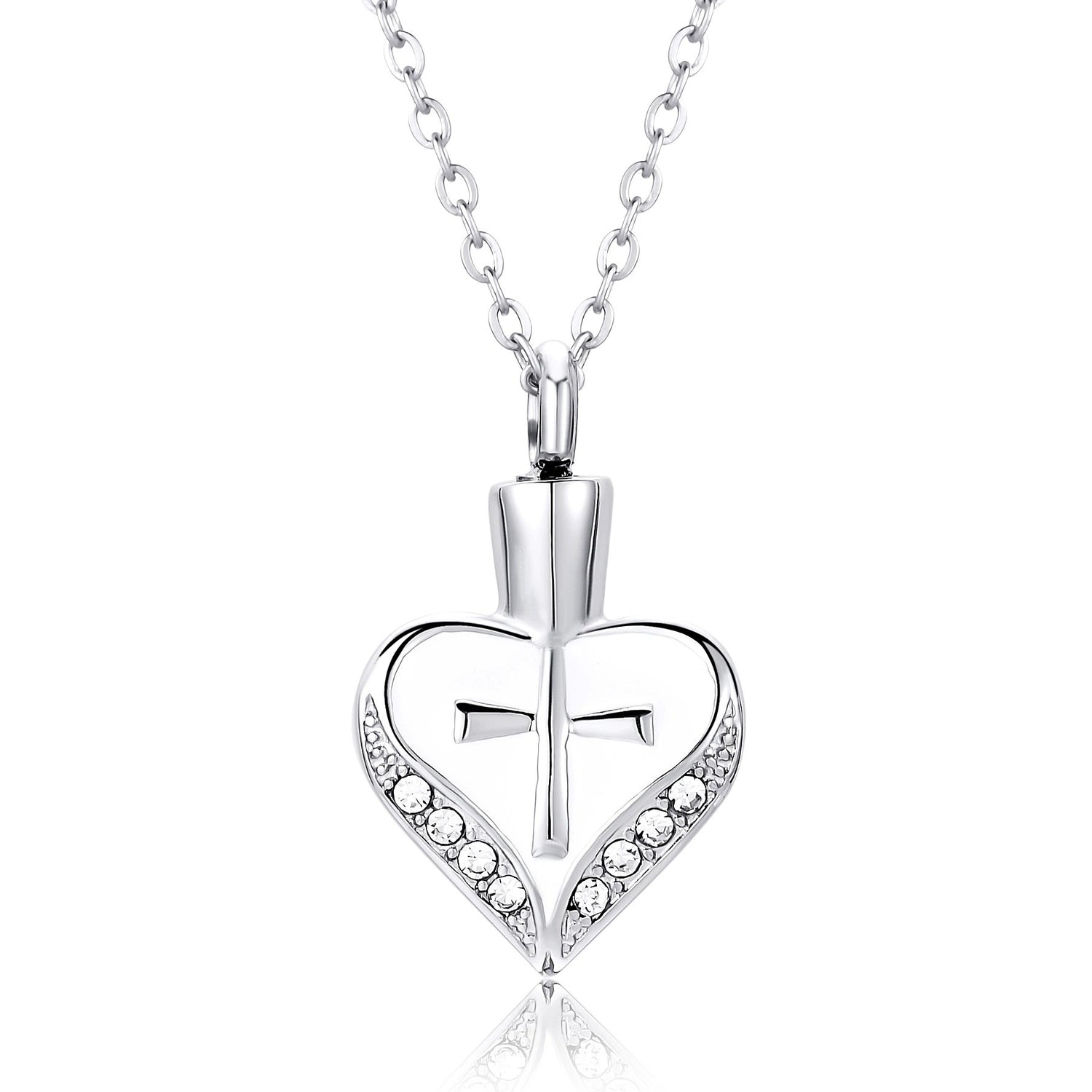 Heart-shaped Cremation Urn Necklace With Cross Memorial Jewelry-A029