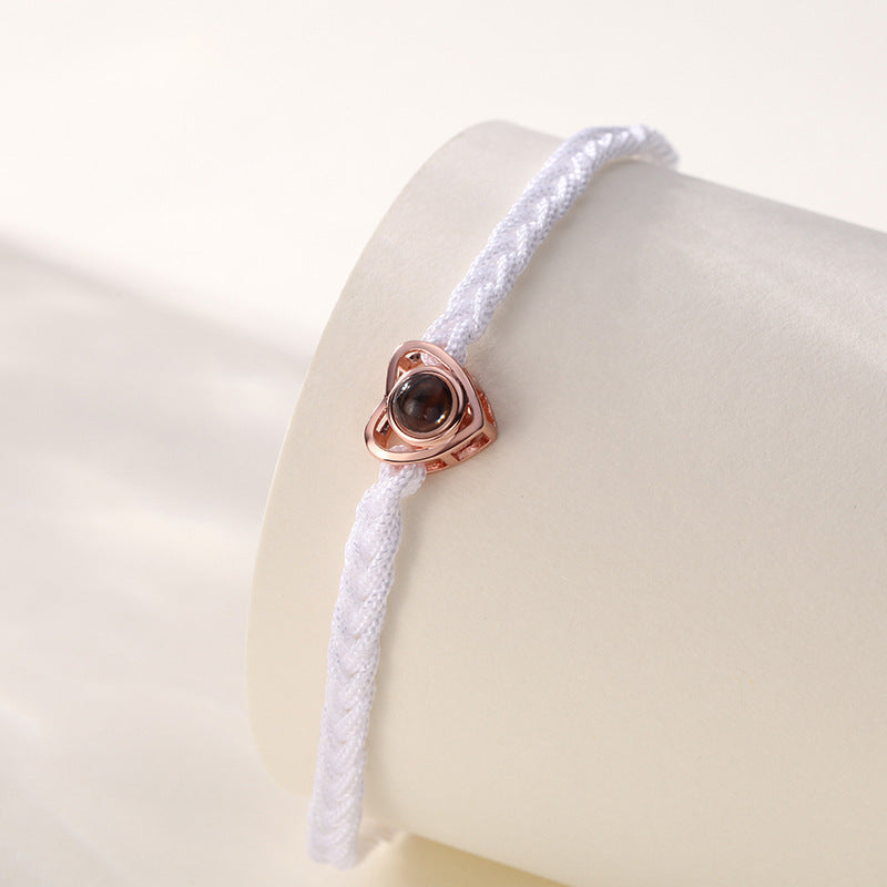 Personalized Heart Photo Projection Bracelet Colorful Braided Rope - P007